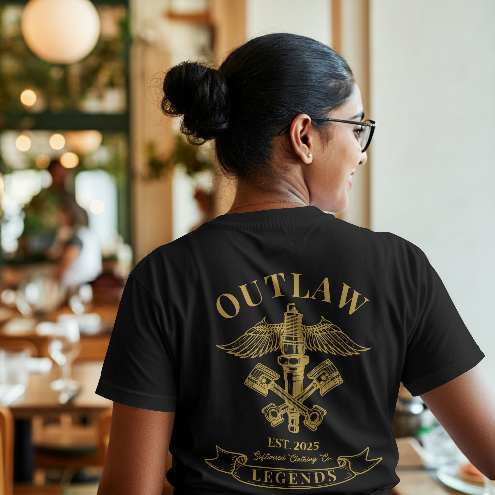 The SOFTWIRED®️ OUTLAW LEGENDS classic tee playfully blends moto culture with a sleek twist, adding a dash of elegance to its petrol head vibe. Made from 100% organic combed cotton, it offers a soft yet durable feel that’s perfect for everyday comfort. Its bright, eco-friendly print adds a fun pop, showcasing your bold and unique style.
