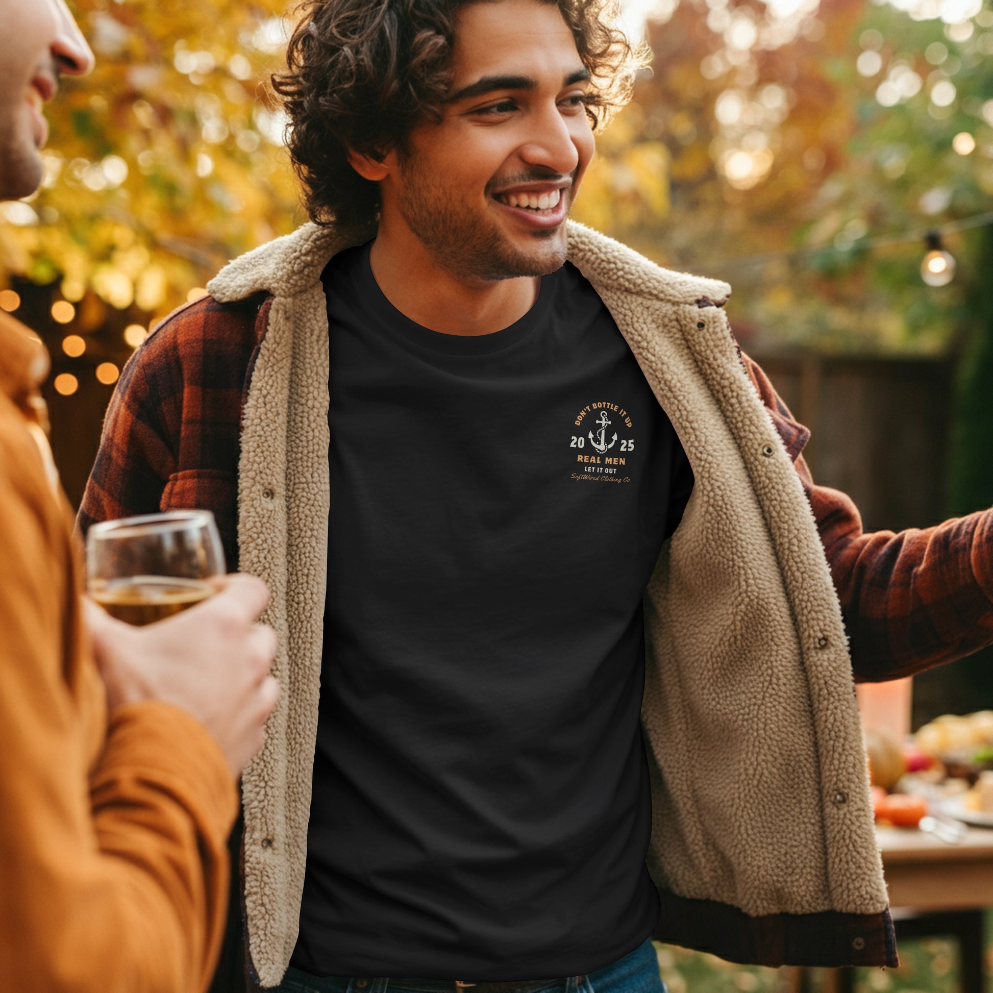 Get ready for unmatched comfort with the SOFTWIRED®️ REAL MEN LET IT OUT tee. Celebrating the days when ships were wooden and men were solid steel, this 100% organic combed cotton shirt feels buttery soft and smooth against your skin. Built tough to last, it’s perfect for anyone who wants durability without sacrificing style. Grab a tee that’s as strong and reliable as you are, delivering all-day comfort with a wink of nostalgia.